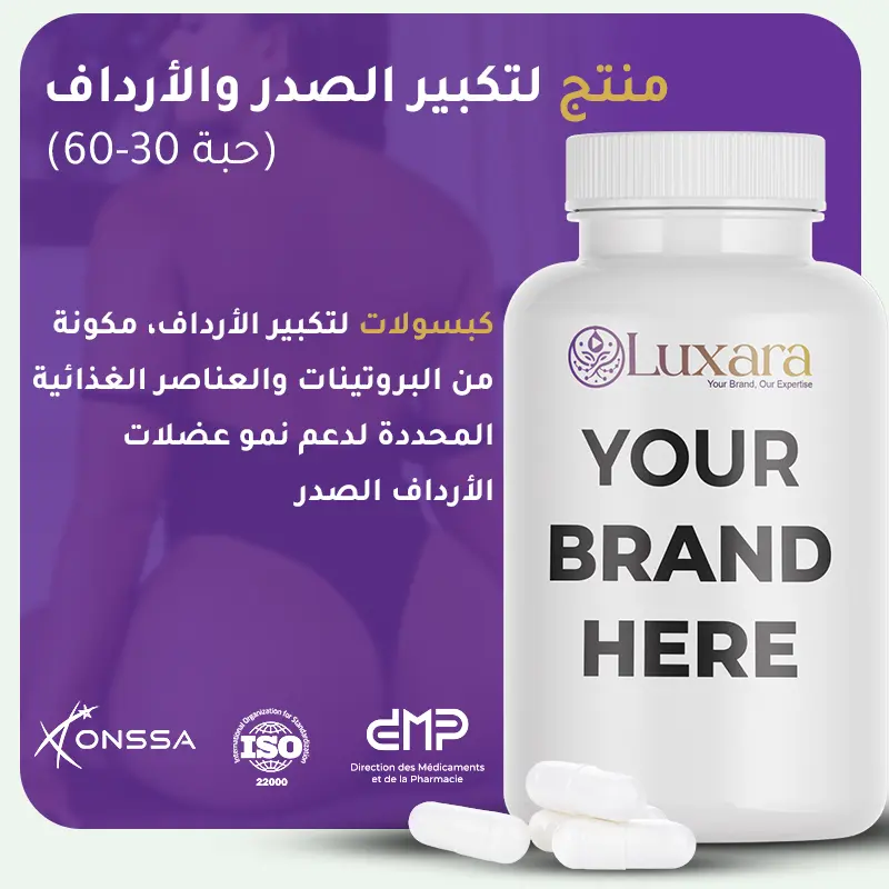كبسولات تكبير الصدر والمؤخرة، مصنوعة من بروتينات وعناصر غذائية محددة لدعم نمو عضلات المؤخرة و الصدر